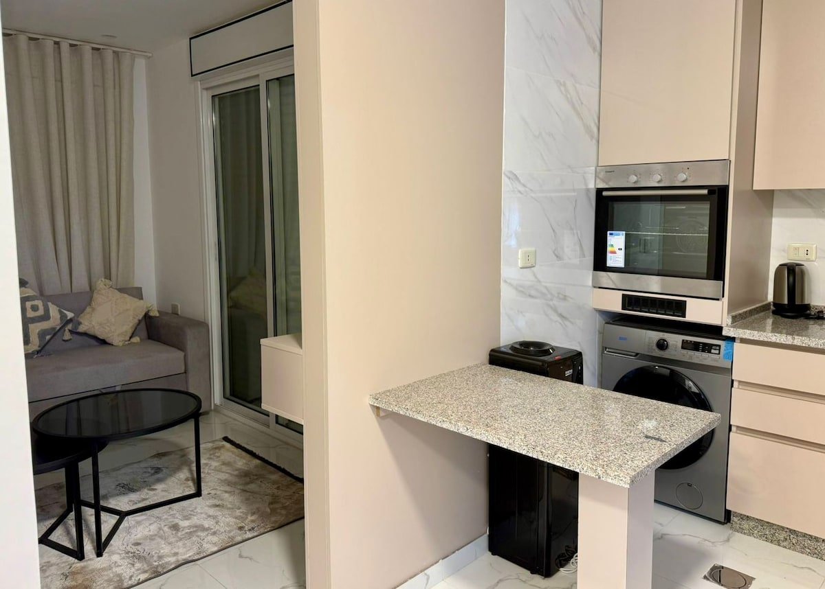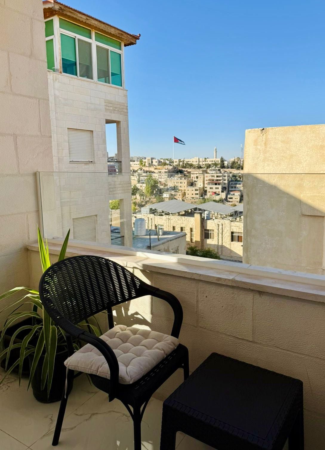 Welcome to our charming apartments in Jabal Al-Webdeh, just a minute from Paris Circle and a 10-minute walk to Downtown Amman. Each stylish unit includes a bedroom, a living room with a sofa bed, a modern kitchen, a private bathroom, and a balcony with a lovely view. Enjoy the shared garden and sitting area in front. Fully equipped and located in an elevator building, it’s the perfect base for your Amman stay!